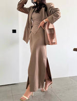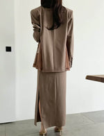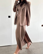 - Silhouette sublimée et intentionnelle : Éloignez-vous de la peur des coupes amples qui masquent la forme. La large ceinture du blazer sculpte délicatement votre taille, tandis que les fentes profondes du pantalon allongent visuellement la jambe, créant une allure élancée, moderne et pleine d'assurance, loin de tout effet négligé.