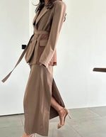 Ensemble Kimono Marron blazer & pantalon ceinturé : l'élégance moderne redéfinie
