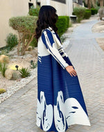 Considérez cette pièce non comme un simple vêtement, mais comme une œuvre graphique en mouvement. Nous avons conçu ce kimono abaya comme une toile contemporaine, où les contrastes, les lignes et la matière dialoguent pour révéler une élégance forte et maîtrisée. Sa silhouette ample et structurée est une invitation à occuper l’espace avec assurance, à affirmer une présence qui allie modernité, sobriété et caractère.