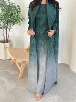 Kimono abaya vert dégradé : élégance, confort et valeurs respectées.