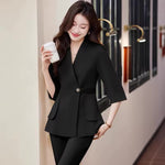 - Redéfinissez la polyvalence : Ne choisissez plus entre formalité et décontraction. L'ensemble kimono noir blazer transite sans effort du bureau à vos soirées élégantes, vous garantissant une prestance irréprochable et toujours appropriée. C'est l'investissement intelligent pour une garde-robe aux multiples facettes.
