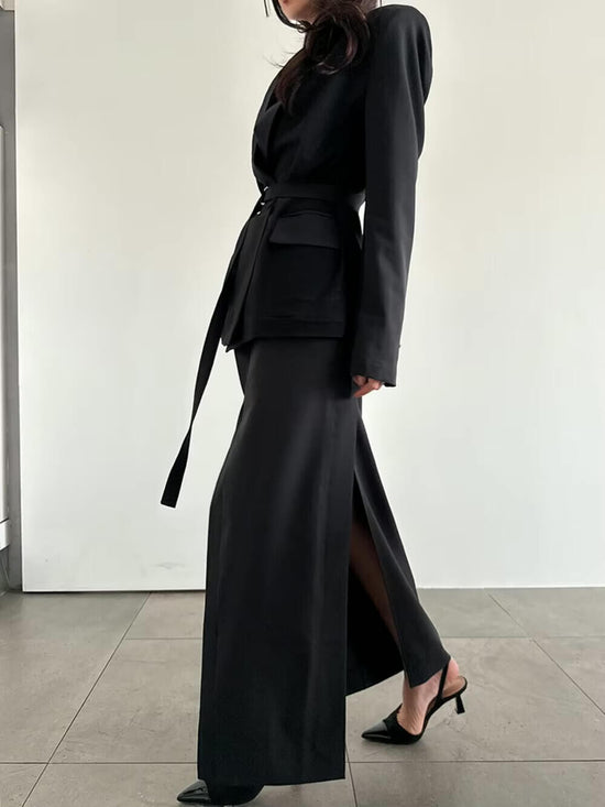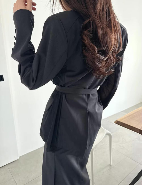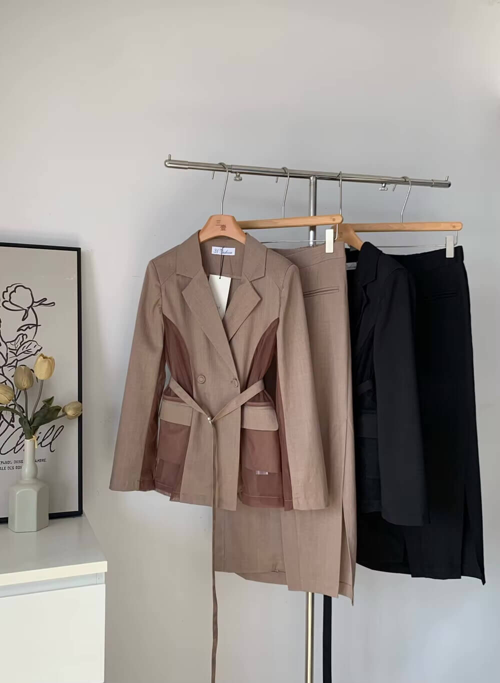 - Silhouette sublimée : La ceinture structurante du blazer et les coupes intelligentes du pantalon valorisent votre morphologie avec finesse, offrant une allure soignée et intentionnelle, loin de l'effet "négligé".