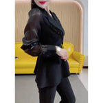- Modernité assurée : Cet ensemble incarne la quintessence du style contemporain. Il fusionne l'élégance intemporelle du noir avec des éléments de design très actuels tels que la transparence, le volume maîtrisé et une coupe asymétrique. L'inspiration Kimono est magnifiée par un col de blazer structurant, créant une pièce qui se réinvente constamment.