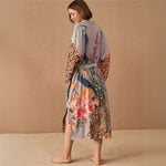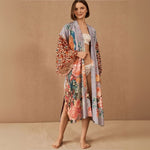 Kimono de Plage Vintage Fleuri Violet