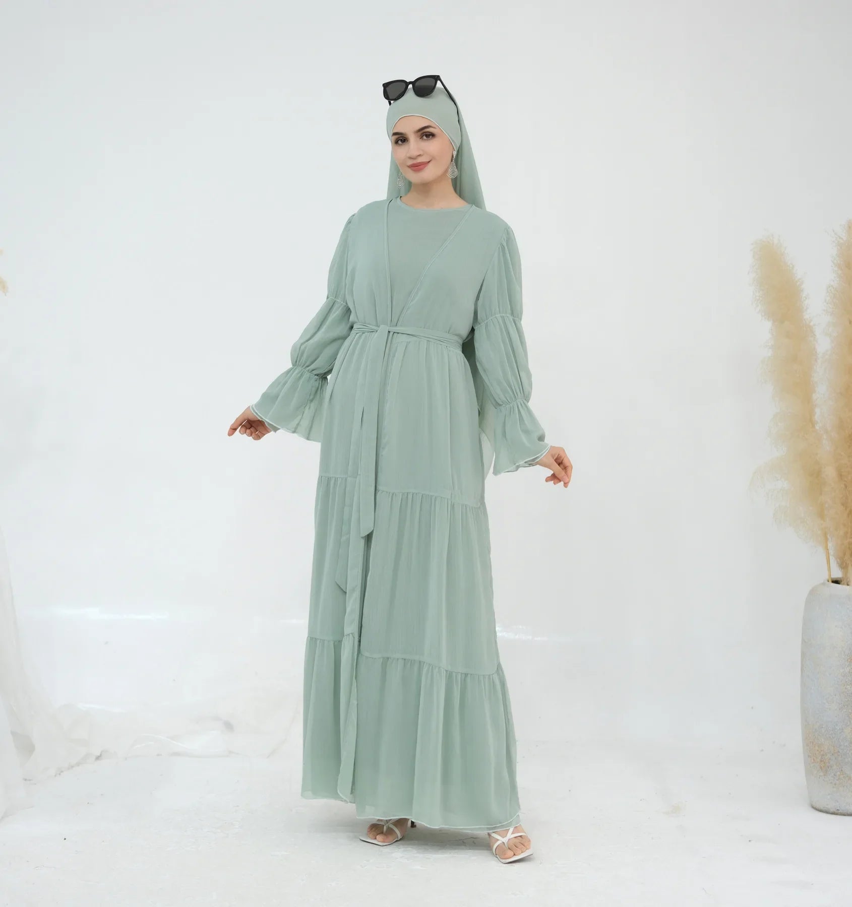 Ensemble Kimono Abaya Vert Menthe : l'élégance modeste réinventée pour un style sans effort.