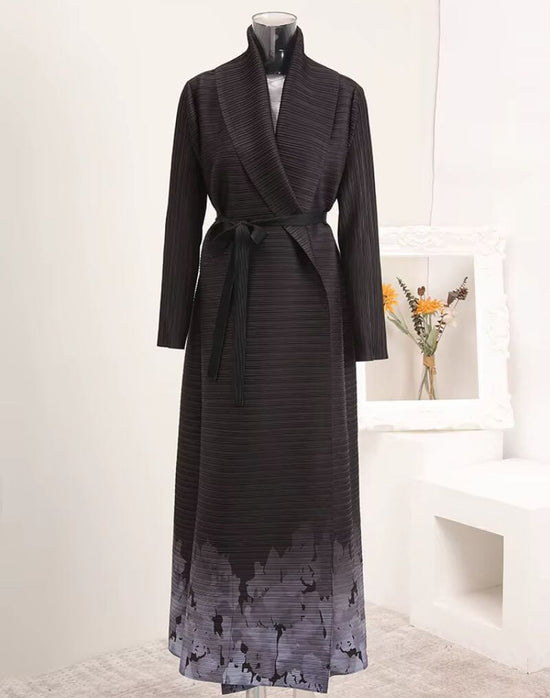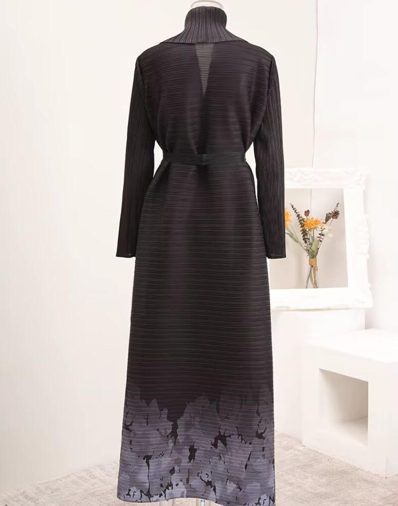 Ce kimono abaya incarne une véritable rencontre des cultures. Il marie l'élégance intemporelle du kimono, avec sa coupe enveloppante et son large col châle drapé, à la grâce de l'abaya, réinventée dans un esprit résolument contemporain. Le choix du plissé vertical n'est pas anodin ; il confère à la pièce une architecture textile unique, une profondeur visuelle qui joue avec la lumière et le mouvement, créant un effet dynamique et captivant. Chaque fois que vous le porterez, vous ressentirez non seulement le confort de son étoffe, mais aussi l'assurance d'une pièce pensée pour celles qui osent exprimer leur individualité avec raffinement et modernité.
