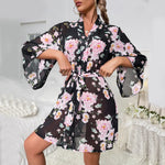 Peignoir kimono noir à fleurs sexy : élégance, confort et confiance au quotidien